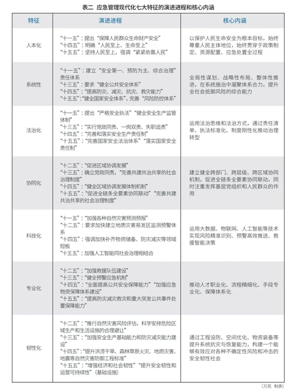 中國式現代化決定了應急管理現代化必須走出一條符合中國國情、體現社會主義制度優勢的新路。從“十一五”到“十五五”,應急管理現代化的核心架構與實踐路徑日益清晰,集中體現為人本化、系統性、法治化、協同化、科技化、專業化、韌性化七大特征。