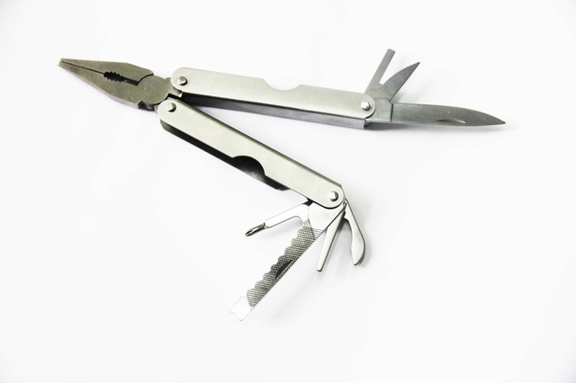 功能:集鉗子,小刀,十字改錐,剪刀、尺子、挫、開瓶器等多種功能于一體,是家居,戶外野營的好幫手